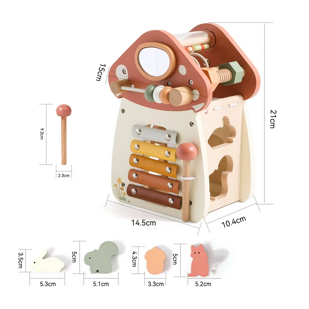 Inspirado no charme da floresta 🍃, esse centro de atividades em formato de cogumelo combina música, coordenação motora e estímulos sensoriais em um design delicado e acolhedor.